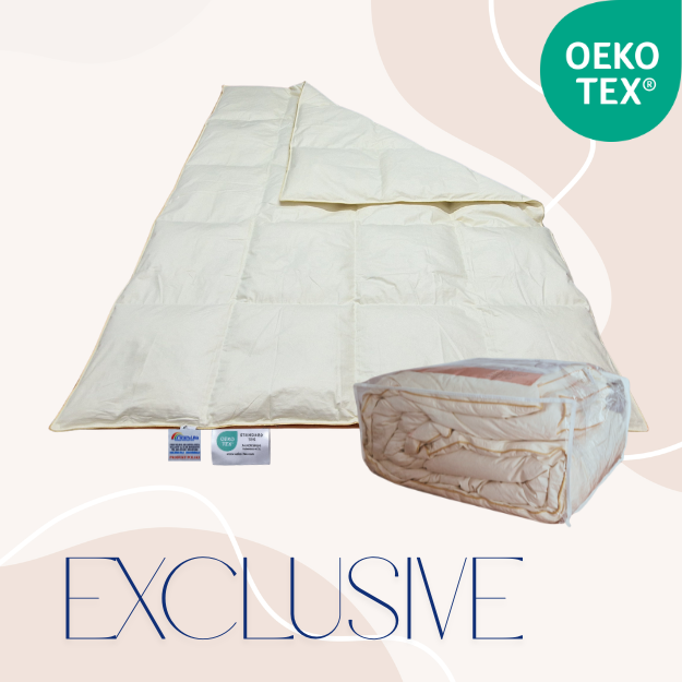 Wypełnienie naszych kołder puchowych Exclusive stanowi 100% wyselekcjonowanego puchu gęsiego.