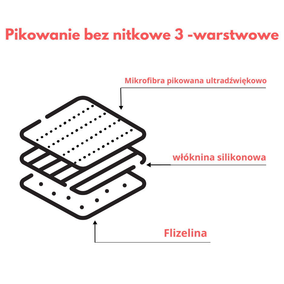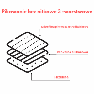 Rodzaj przeszycia: pikowana 3 warstwowo, beznitkowo